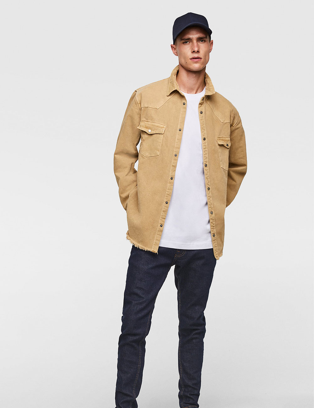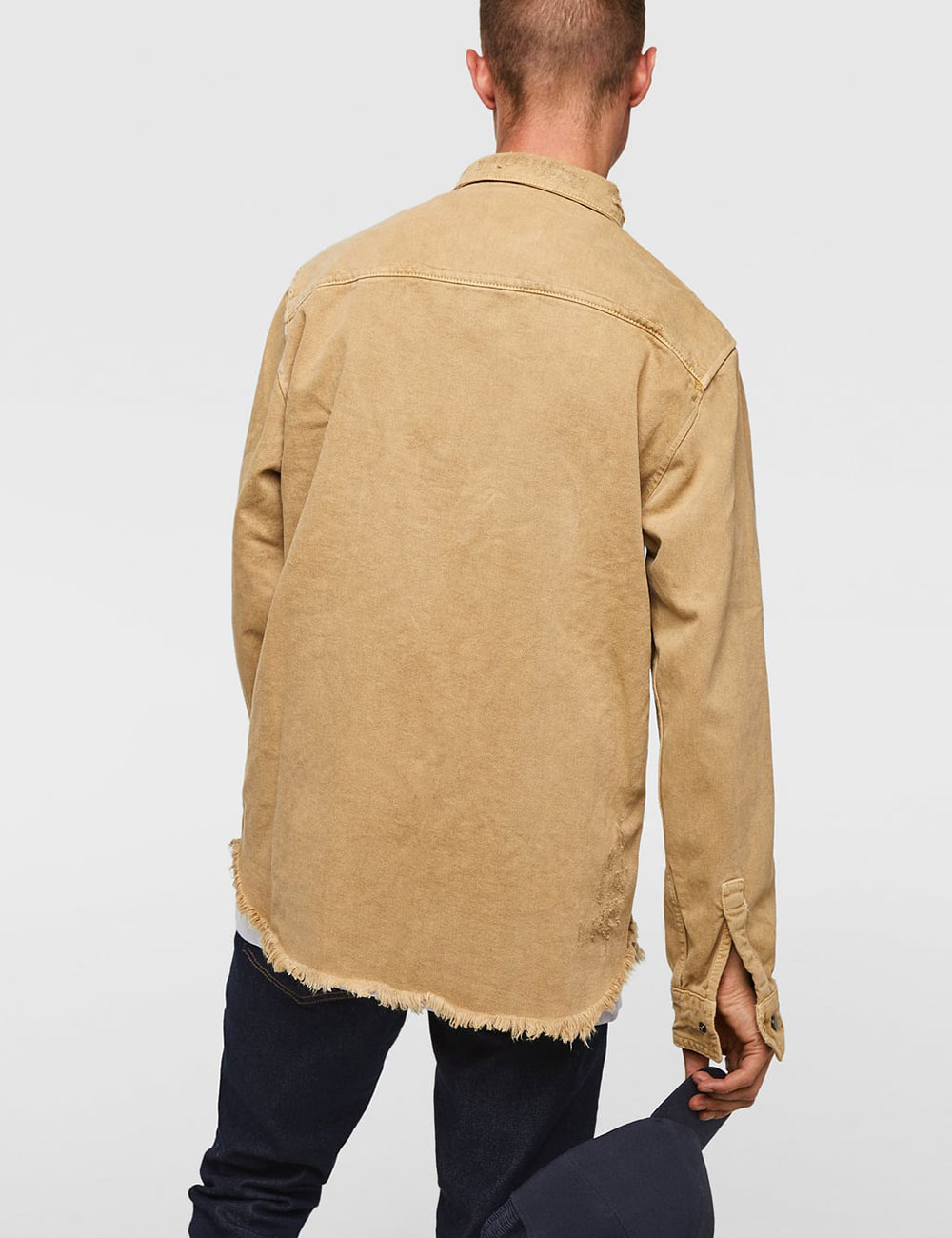 Pantalón de cintura media y corte cropped con desflecado en los bajos.